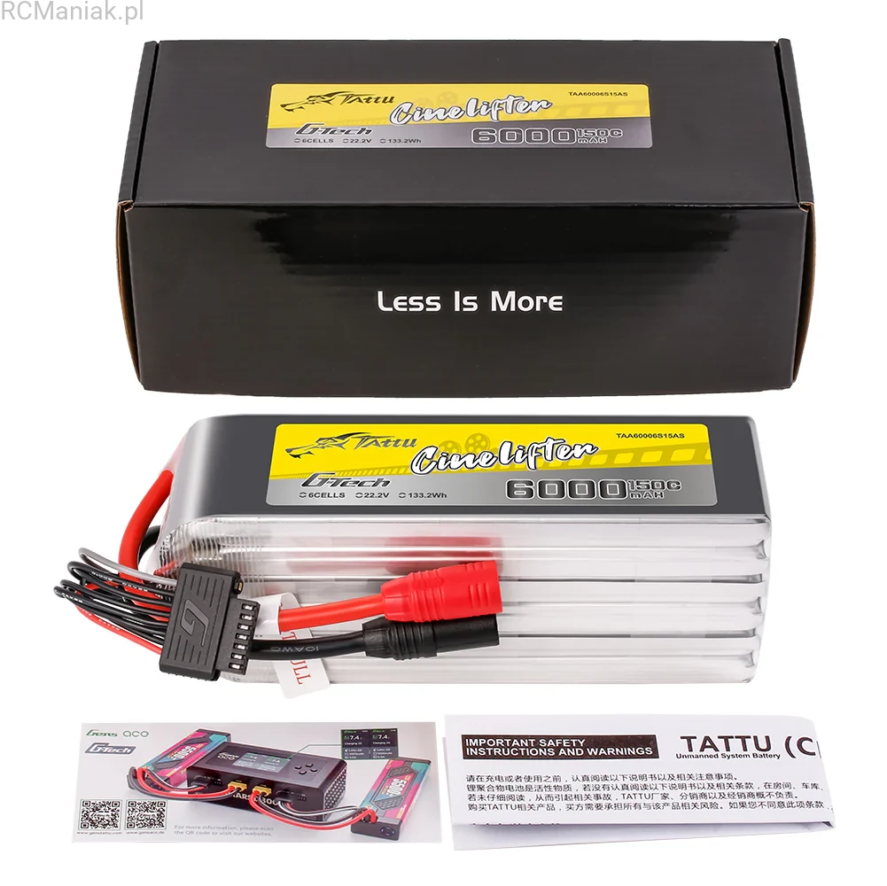 Akumulator Tattu G-Tech 6000mah 22.2V 150C 6S1P Lipo Battery with AS150 Plug