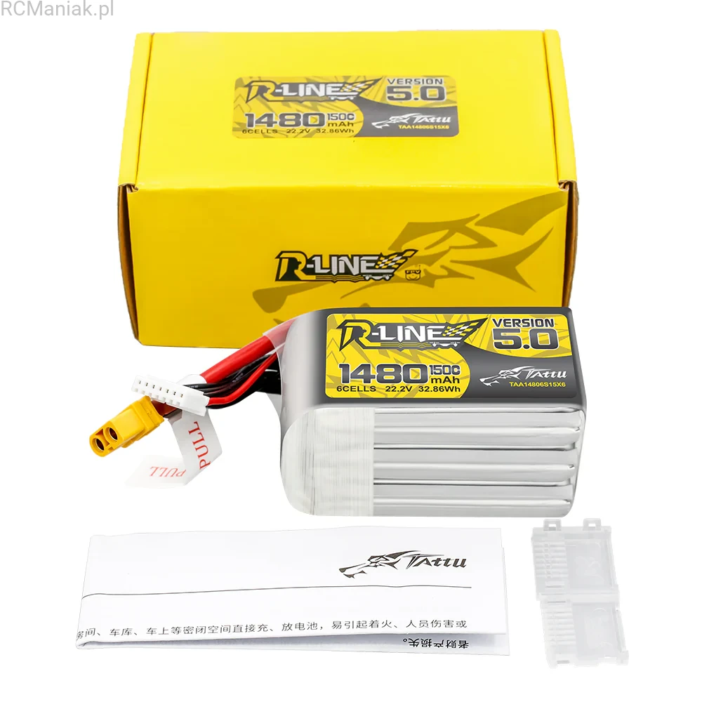 Tattu R-Line Version 5.0 1480mAh 6S 22.2V 150C LiPo battery pack is the latest addition to our V5.0 family.