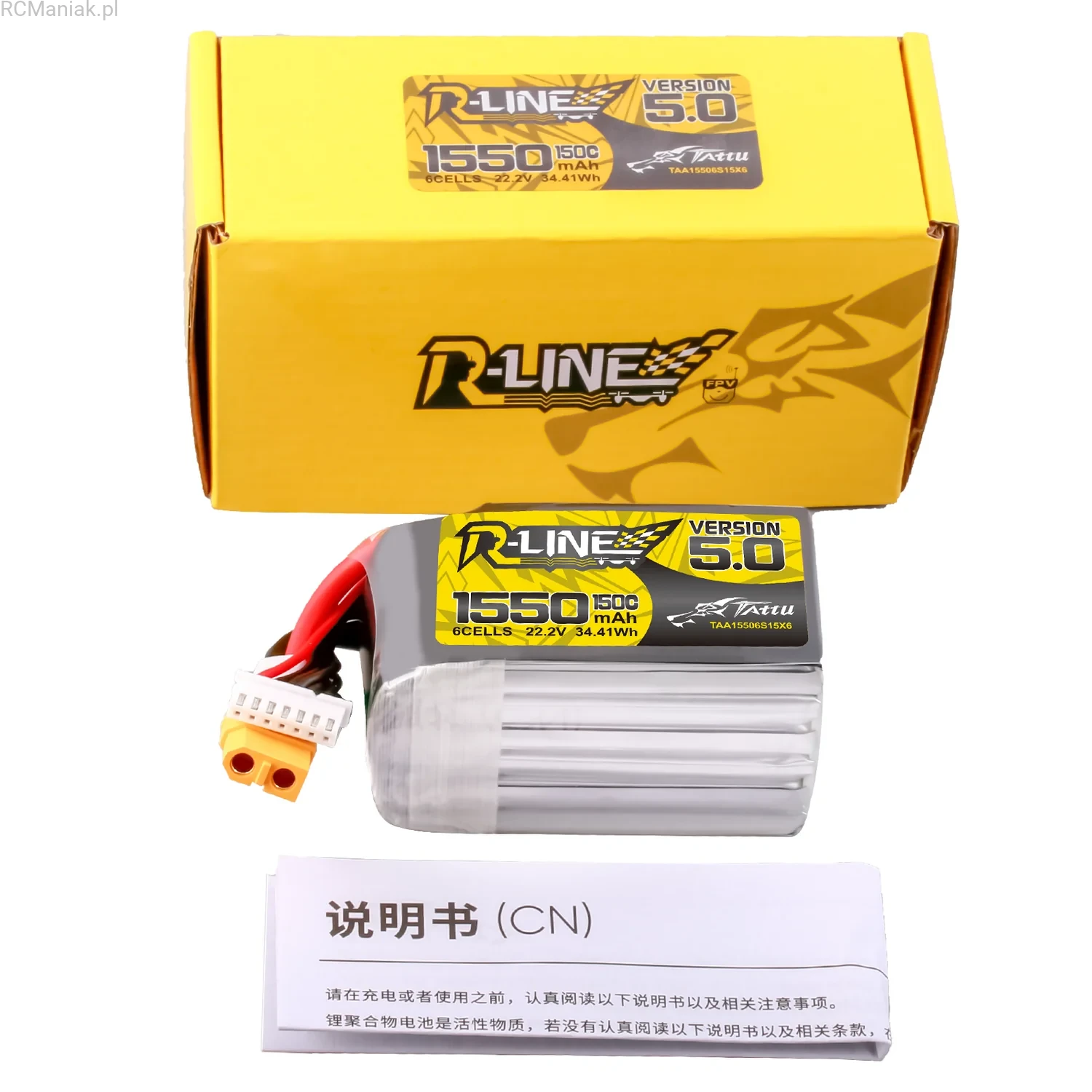 Tattu R-Line Version 5.0 1550mAh 22.2V 150C 6S1P LiPo battery pack is the updated version of R-Line series in 2022. With More Punch; Lower Internal Resistance and Less weight; Tattu R-line V4 definitely dominate all your races.
