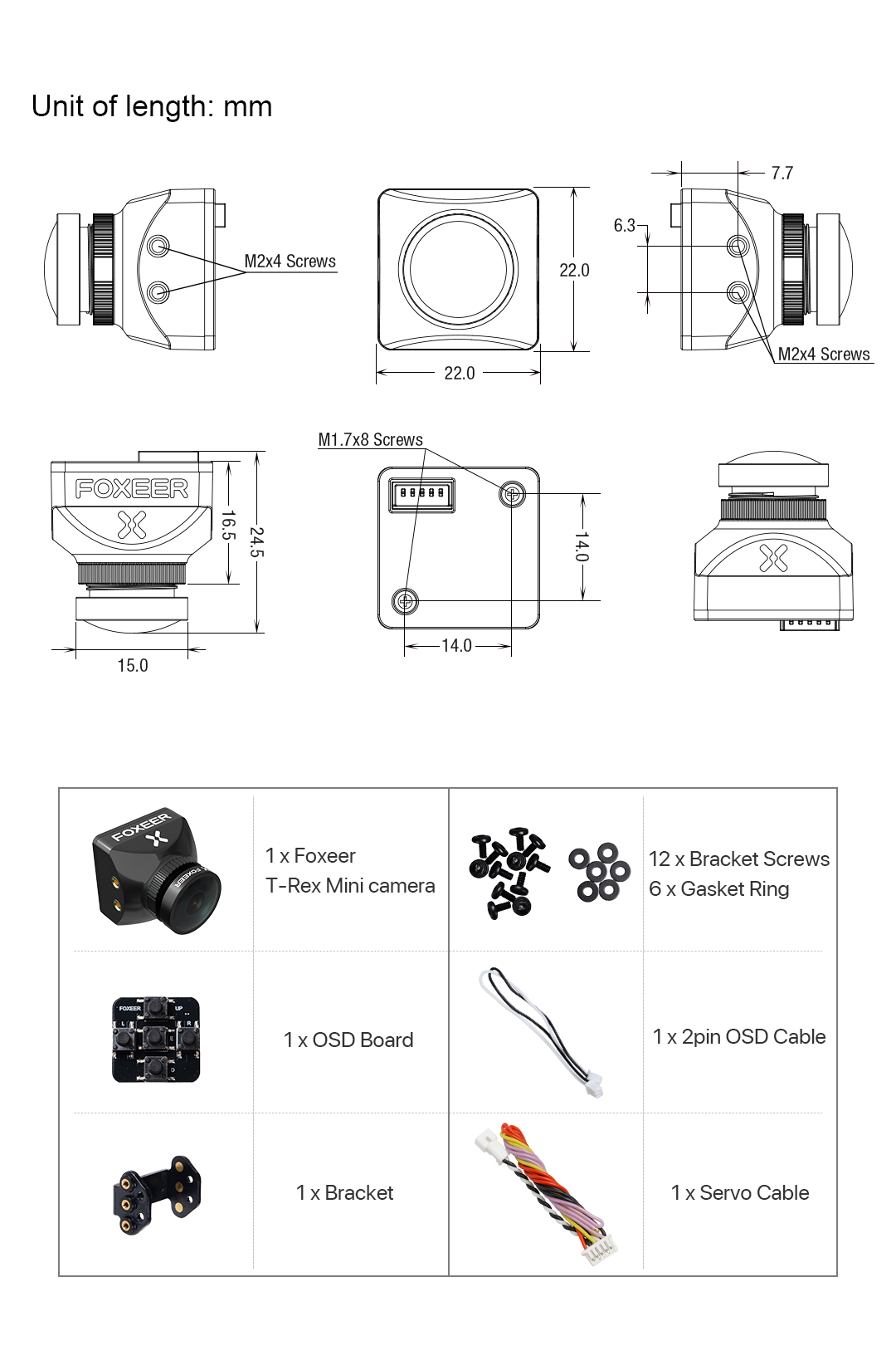 Kamerka FPV CMOS 2MPX 1500TVL WDR 22x22mm 10,2g 4:3/16:9