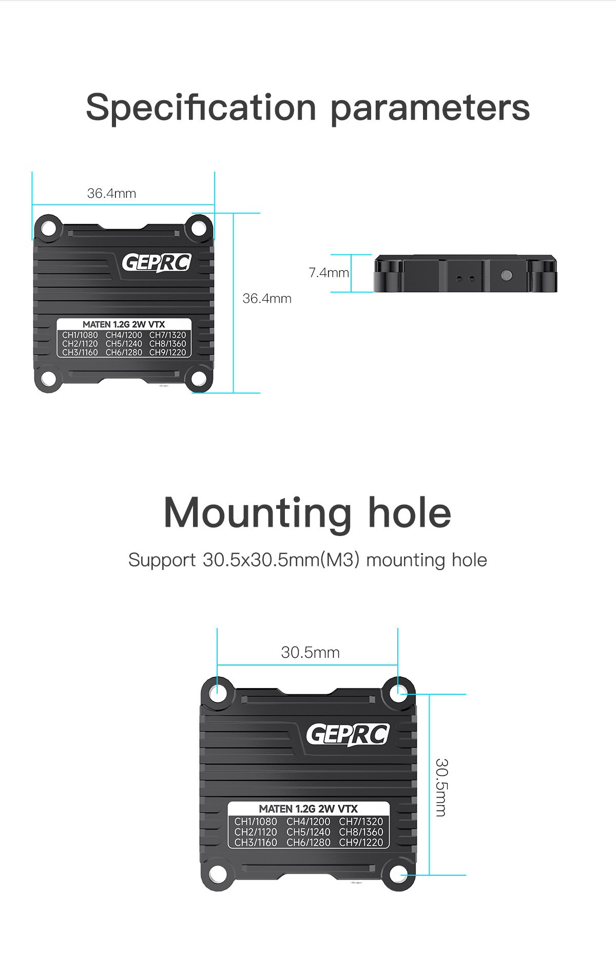- Model:GEPRC MATEN 1.2G 2W VTX