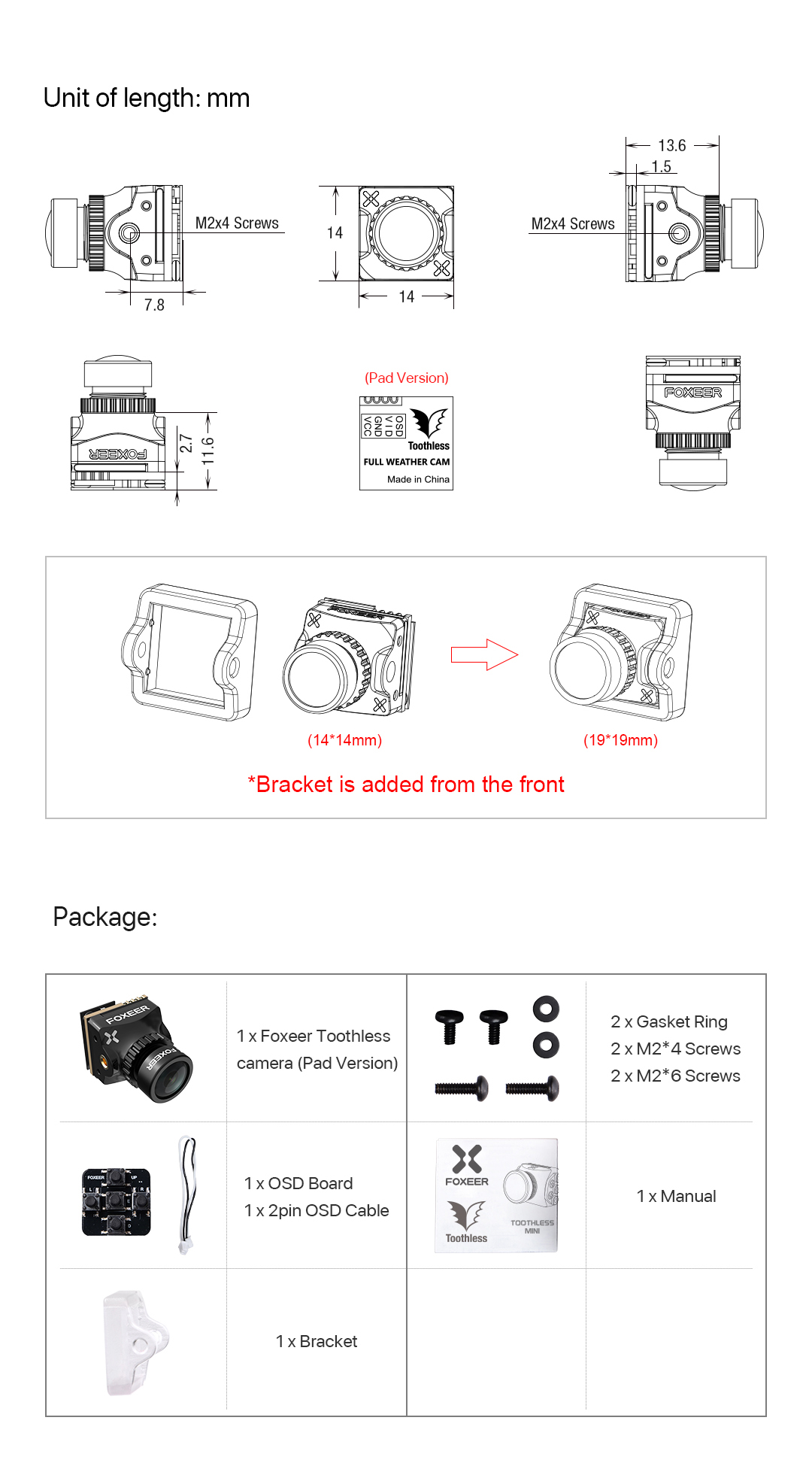 | Dimension | Original:14*14mm, 19*19mm adding bracket |