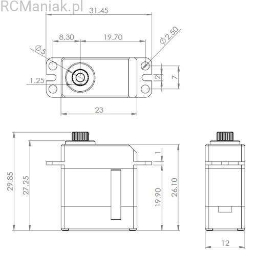Wymiary: 23x12x27.25 mm (0.9X0.47X1.07 in)