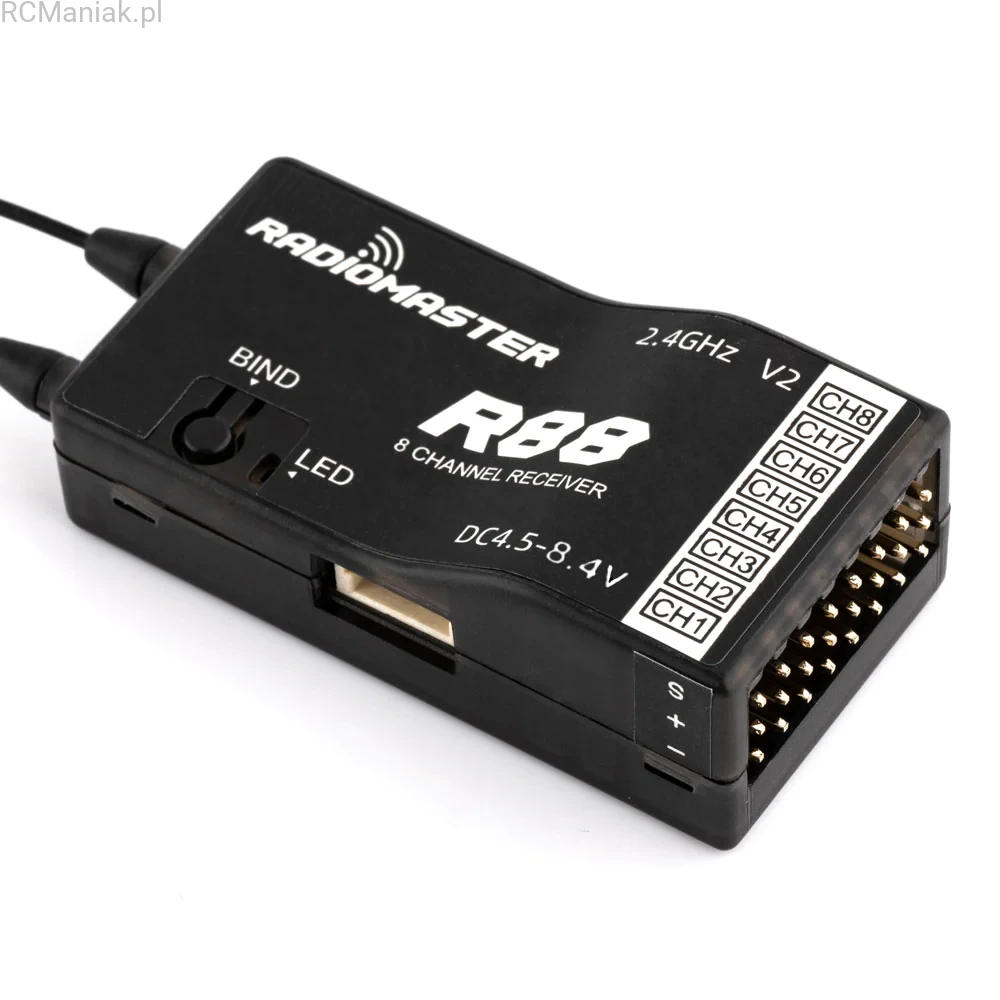 By popular demand, we now have a range of RadioMaster receivers that are upgraded to V2 version. The R88 V2 receiver is Frsky D8 / D16 and Futaba SFHSS Compatible and offers a range suitable to many RC modelers.
